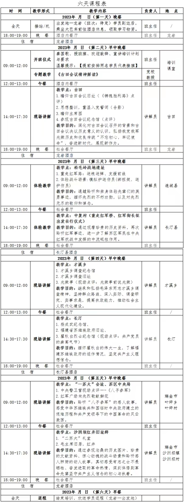 六天课程表